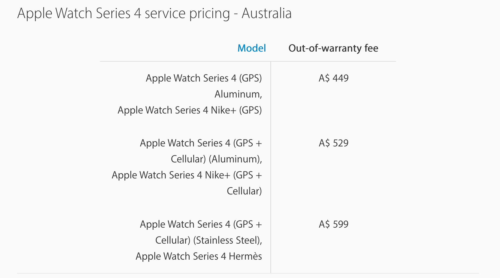 먼저 애플케어 없이 수리 할 경우, 구입한 제품이 스테인레스 버전이라 보증 1년이 지났다면 599 호주달러가 필요하네요.