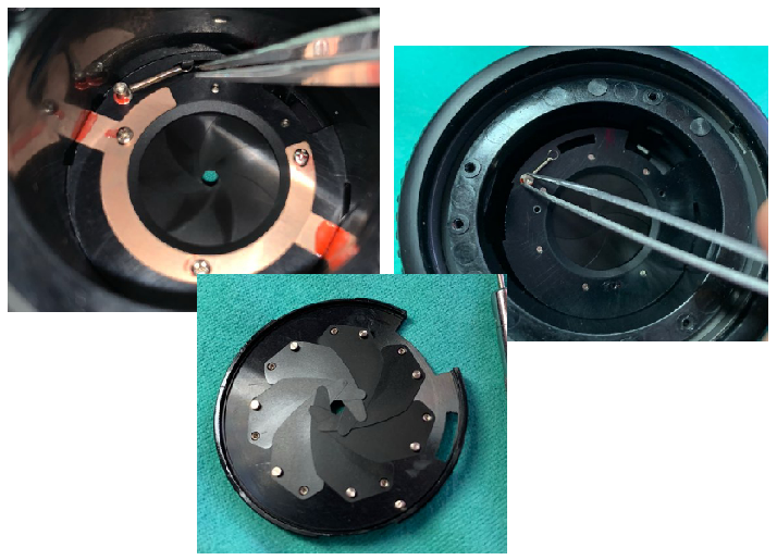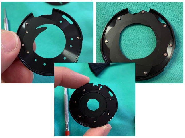 조리개 재조립시 조리개 부품이 몇 번 흘러내려 고생을 좀 했습니다.