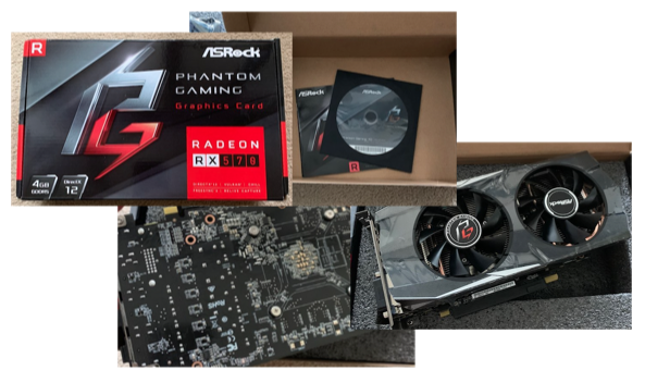 구입한 제품은 애즈락에서 만든 RX570 4GB 제품 입니다. 출시 당시 보급형이다 보니 그 흔한 LED나 전원케이블 젠더 조차 없습니다. 달랑 그래픽 카드. 백플레이트도 없어요. (개인적으로 백플레이트는 아쉬웠습니다.)
