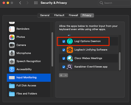 되어 있지 않을 것이다 였습니다만 저의 경우는 아래 Input monitoring 외 모든 항목에 체크표시가 되어 있는 상태 였습니다.