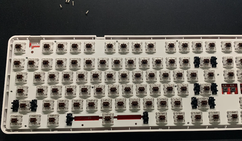 스위치가 핫스왑이 아니라 스테빌라이저는 분해할 수가 없어 플라스틱 지지대 부분에 이쑤시개로 찍어 묻혀 주었습니다.