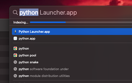 커맨드 스페이스 버튼으로 대충 검색을 하니 인덱싱이 되고 있는 모습을 확인 할 수 있었습니다.