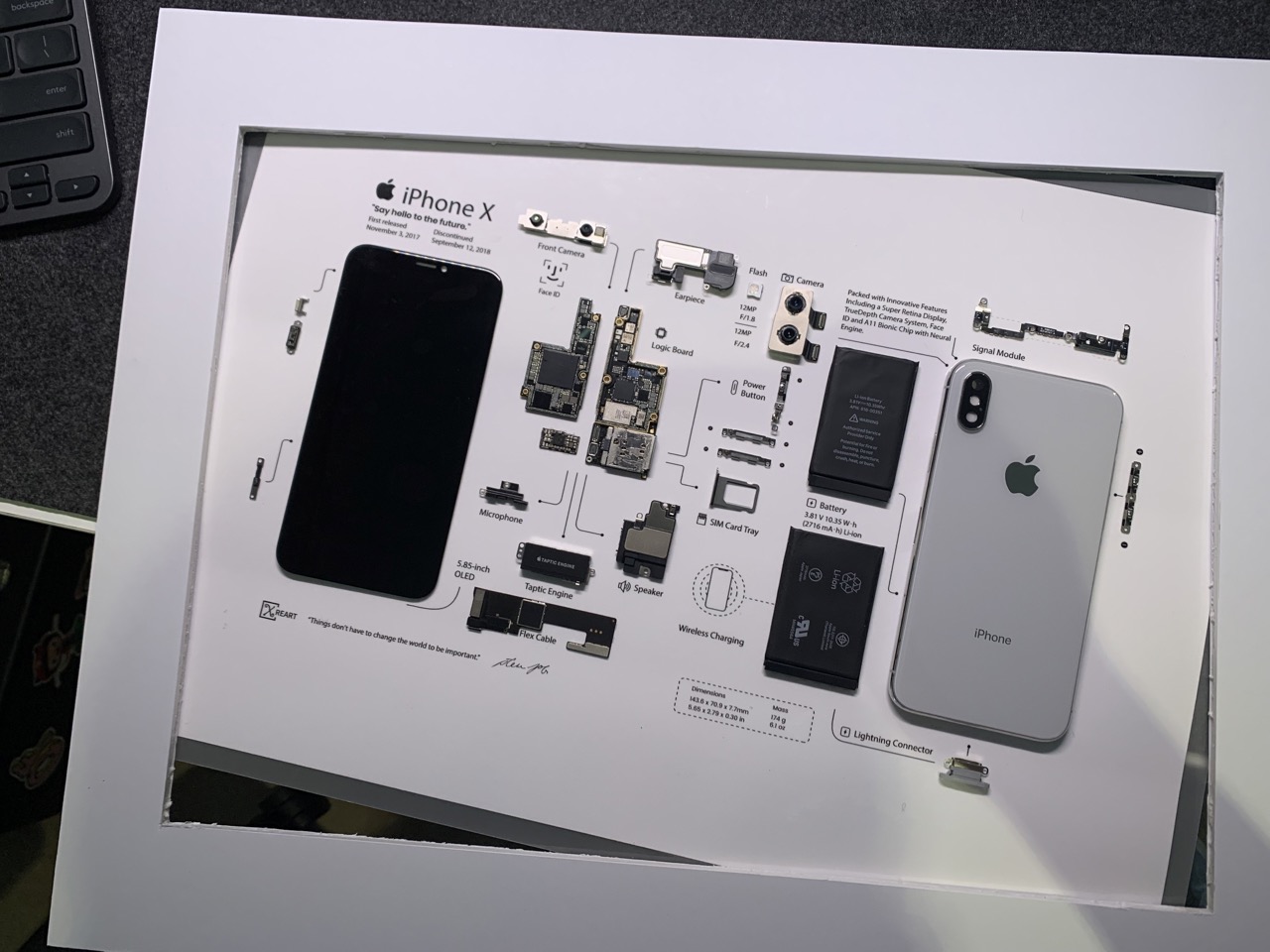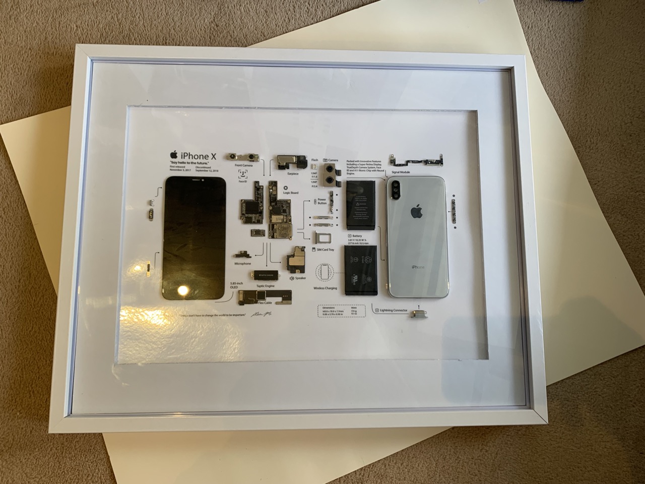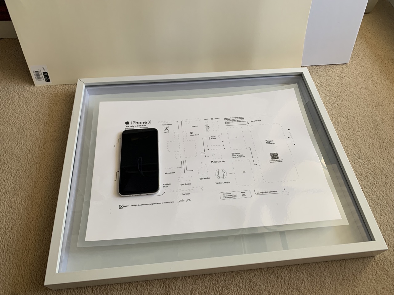 준비물은 서랍에 있는 아이폰X, 라미네이팅 한 도면, 액자 입니다. 그런데 액자가 적당한 사이즈가 없어서